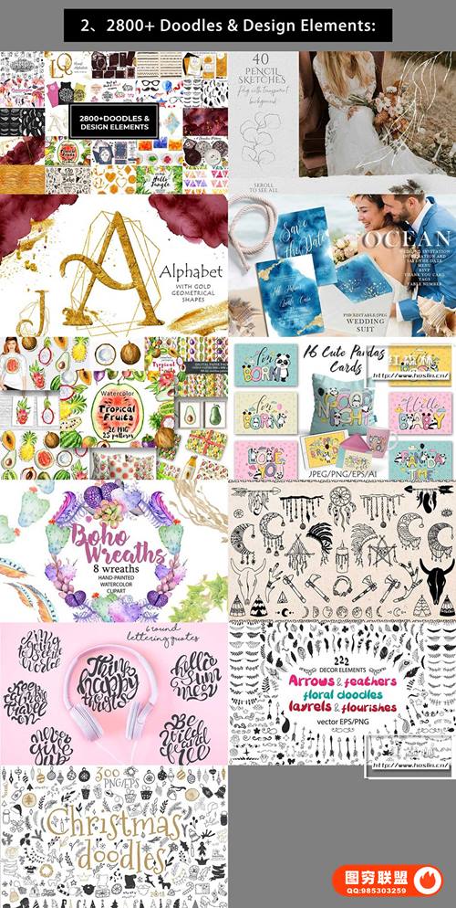 图穷联 » [图片素材]16000+商业设计贴图插画矢量图形标志艺术元素合集包 The Big
