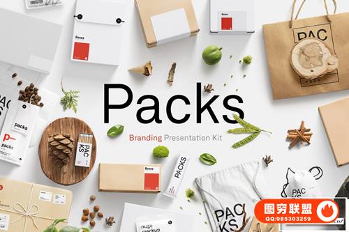 [PS样机]包装盒布袋纸袋罐头物件场景品牌PSD Mockup样机模型展示套件 Packs Mockup Collection – Branding Presentation Kit