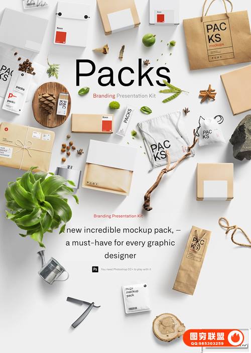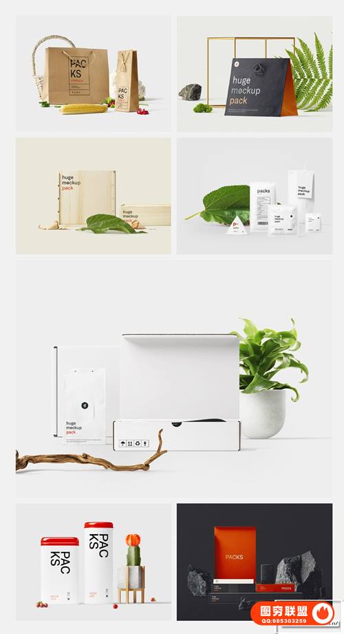 图穷联 » [PS样机]包装盒布袋纸袋罐头物件场景品牌PSD Mockup样机模型展示套件 Pa