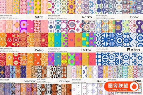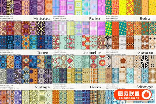图穷联 » [图片素材]266个复古无缝图案拼贴元素背景素材 Vintage Retro Pat