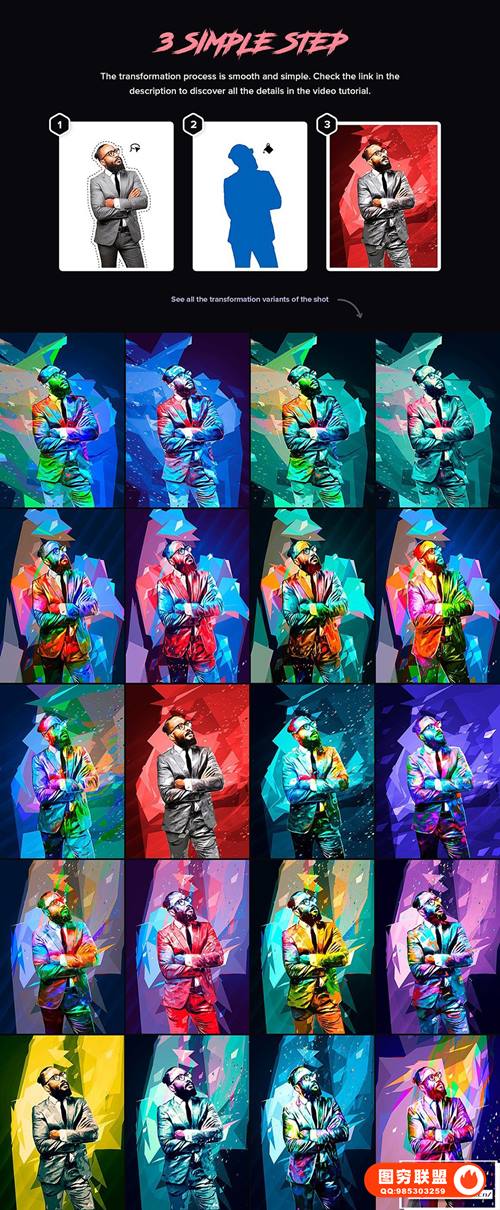 图穷联 » [PS动作]照片彩色晶格化碎片化拼贴融合特效PS动作 Color Fusion Ph