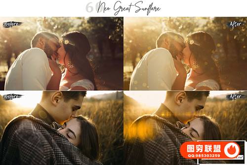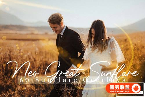 [图片素材]60张电影婚礼人像后期金色散景光斑日光耀斑叠加合成素材 60 Neo Great SunFlare Photo Overlays