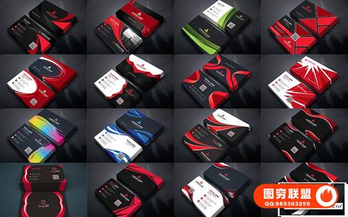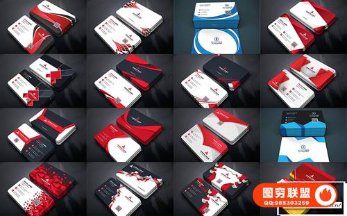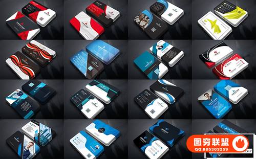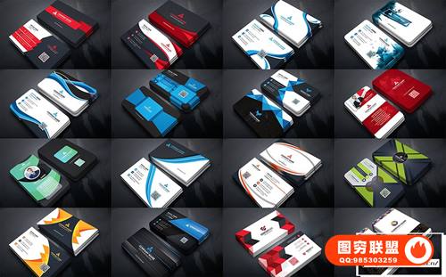 图穷联 » [矢量素材]80组时尚现代商务名片卡片设计样机模板矢量素材 Business Car