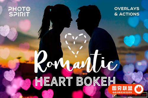 18、[图片素材]52张浪漫的心形散景光斑效果叠加图片素材+PS动作 Romantic Heart Bokeh Photo Overlays
