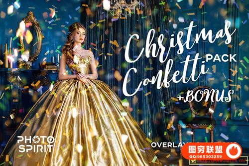 19、[图片素材]42张色彩缤纷的圣诞节五彩纸屑和闪光覆盖效果图片素材+PS动作 Confetti Overlay Effect In Photoshop