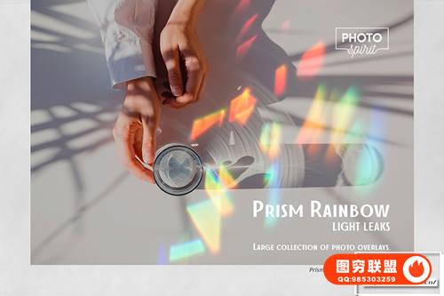 1、[图片素材]44张镜头折射棱镜彩虹漏光光斑叠加合成素材 Prism Rainbow Light Leaks Overlays (New!)