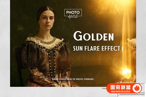 4、[图片素材]45张金色太阳耀斑光斑照片叠加合成素材+PS动作 Golden Sun Flare Overlay Effect 2 (New!)