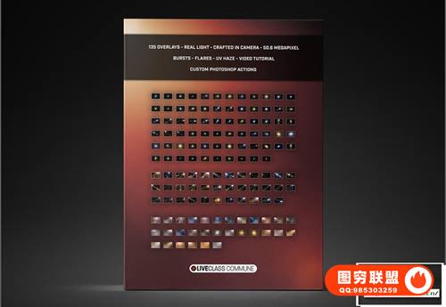 世界上最有效的真实灯光叠加和 Photoshop 动作包。包括135 个曝光、耀斑、炫光、漏光和 UV紫外线雾霾叠加,使用真实光源手工制作并在相机中拍摄。分辨率 50.6 兆像素文件 (8688×5792 @300dpi) 。