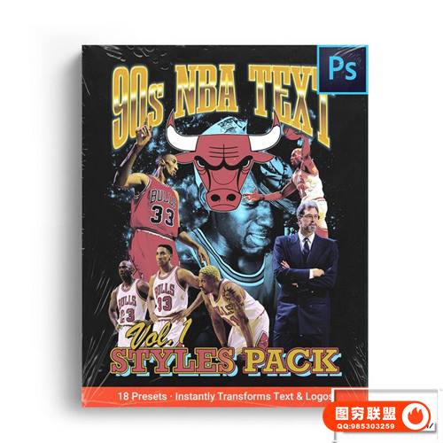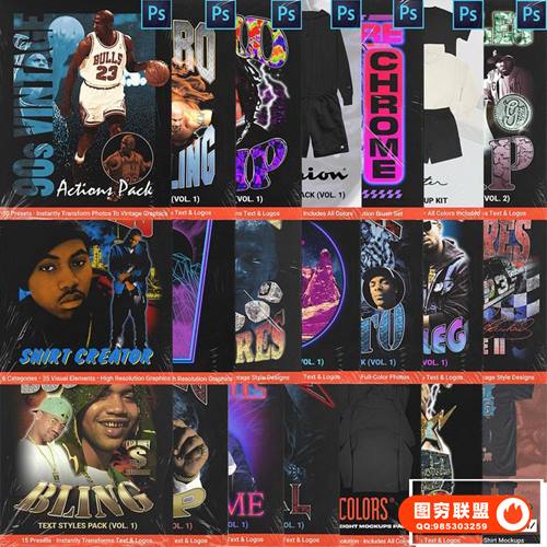 图穷联 » [PS素材]29套90年代经典怀旧PS文字样式NBA运动T恤PS样机复古纹理预设大师