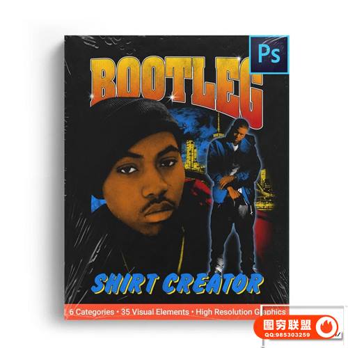 一系列预制元素和图形,用于您的下一个复古风格设计。Bootleg Shirt Creator Pack(第1卷)包含 35 个高分辨率视觉元素,您可以将它们简单地拖放到 Photoshop 中,以及易于使用的画笔工具。混合搭配不同的元素来创造你自己独特的设计。