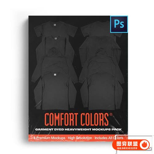 我的首选批发品牌之一是 Comfort Colors,特别是他们的重量级成衣染色坯料。Comfort Colors 重量级模型包(第1卷)共包含 8 个高分辨率模型,非常适合您的在线商店、演示文稿或介于两者之间的任何内容。