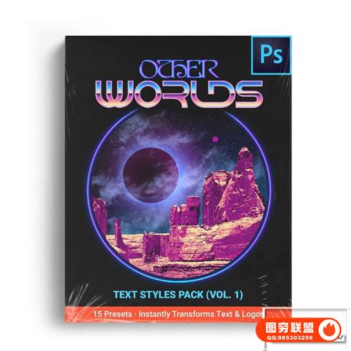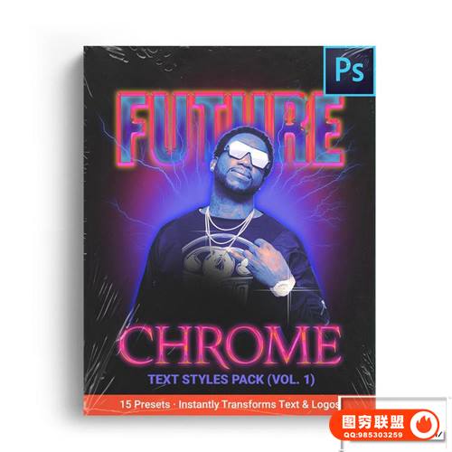 该包共有 15 个独特的预设,具有灼热的渐变、放大的外发光、光滑的抛光镀铬和头部撞击纹理。