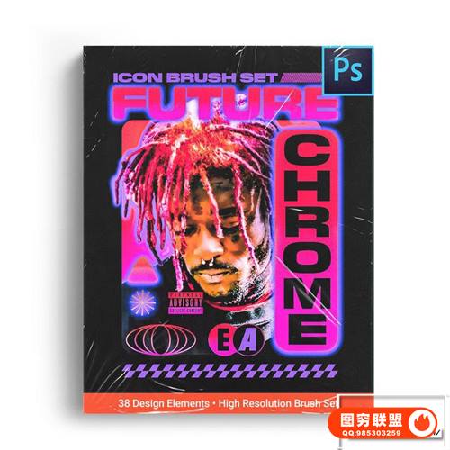 该包包括科幻元素,如锐利的星星、网格地球仪、条形码、药丸形状、警告符号等等。与 Future Chrome 文字样式包 (第1卷) 完美搭配。