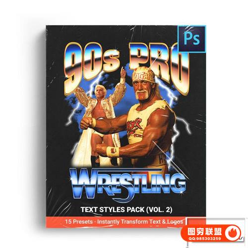 2. 90s Vintage Pro Wrestling Text Styles Pack 90 年代复古职业摔跤文本样式包(第1卷)