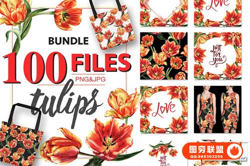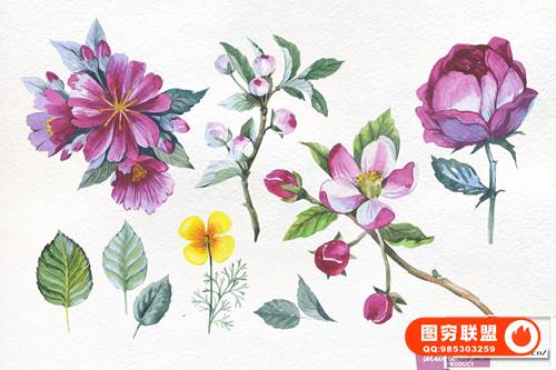 图穷联 » [图片素材]500多个精美花卉植物动物水彩插画图案图形设计元素包 Watercolo