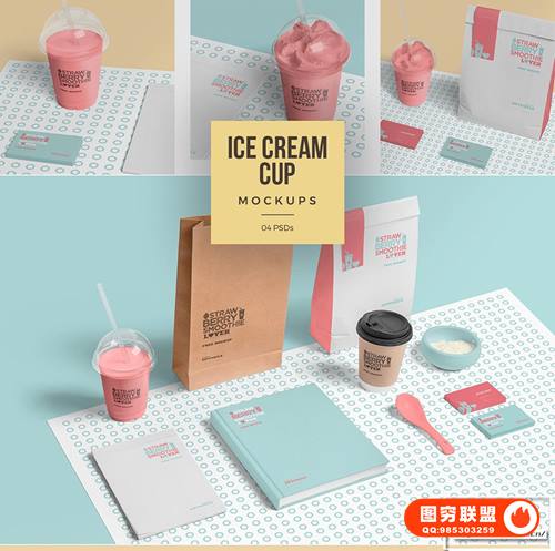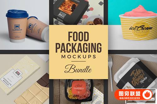 图穷联 » [PS样机]40个咖啡杯蛋糕盒冰淇淋杯纸美食包装PSD样机模型 40 Food Pa