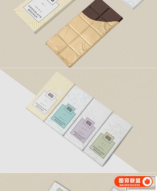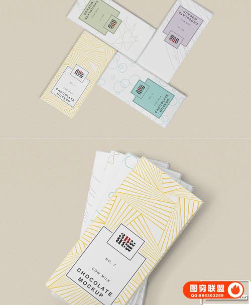 5 Cool Chocolate Bar Mockup:完全分层的巧克力棒模型,将帮助设计师制作出高质量的包装设计演示。这些模型包括巧克力包装和巧克力棒的不同布置。您可以单独更改所有包装的设计以及巧克力的颜色。您还可以调整模型的阴影、效果和背景。