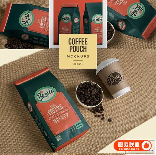 4 个咖啡袋样机:查看这套独家咖啡袋样机,它们将帮助您展示超出预期的包装设计。提供 4 种具有独特风格和排列的不同 PSD。