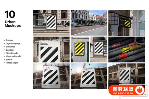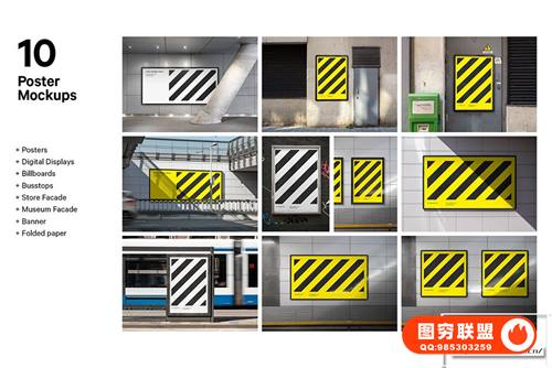 图穷联 » [PS样机]82个公交巴士建筑外墙广告牌工地横幅户外海报PSD样机模型 Giga P