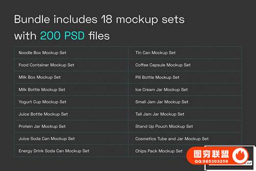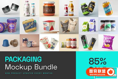 图穷联 » [PS样机]200个食品容器牛奶纸盒酸奶杯果汁汽水瓶药瓶罐头化妆品包装PSD样机模型