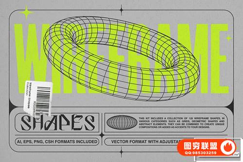 [矢量素材]128款潮流透视空间抽象几何网格图形矢量素材 Wireframe Sha