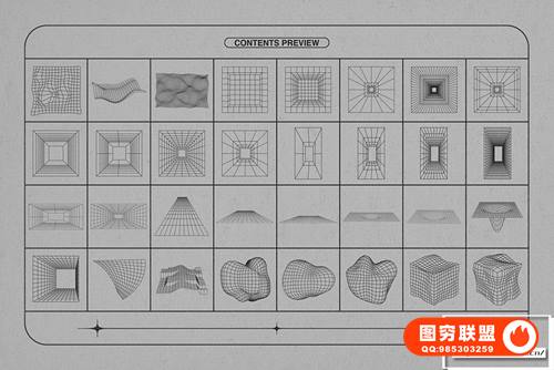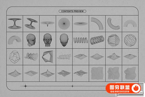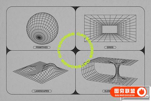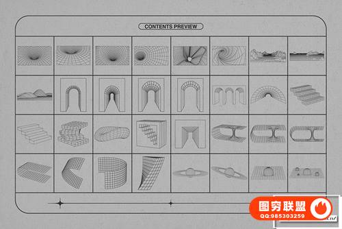 图穷联 » [矢量素材]128款潮流透视空间抽象几何网格图形矢量素材 Wireframe Sha