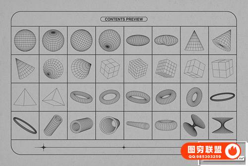[矢量素材]128款潮流透视空间抽象几何网格图形矢量素材 Wireframe Shapes