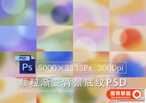 图穷联 » [图片素材]15款酸性颗粒肌理彩色渐变光晕底纹背景PSD分层设计素材 Gradien
