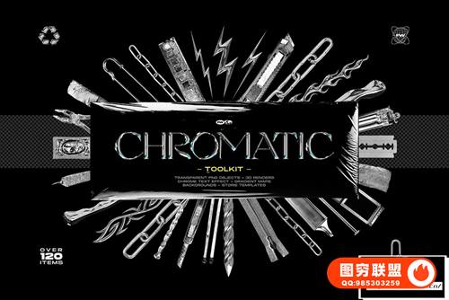 [图片素材]140款未来复古液态立体3D镀铬文字金属锁链酸性嘻哈机能设计PNG/PSD素材 Chromatic Toolkit