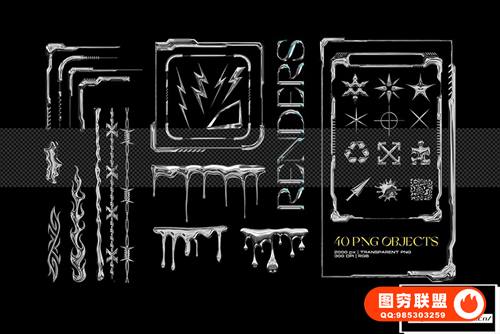 图穷联 » [图片素材]140款未来复古液态立体3D镀铬文字金属锁链酸性嘻哈机能设计PNG/PS