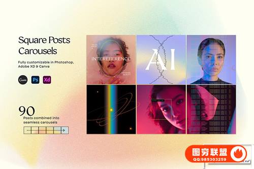 90 个 Canva 布局以 Square Ins帖子的版式组合成 15 个无缝轮播