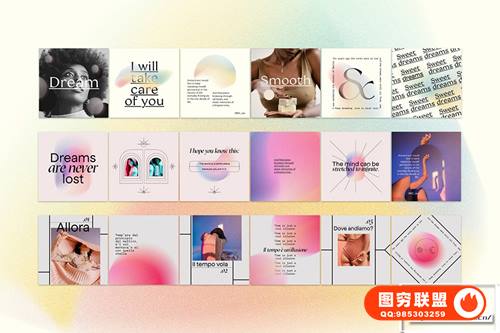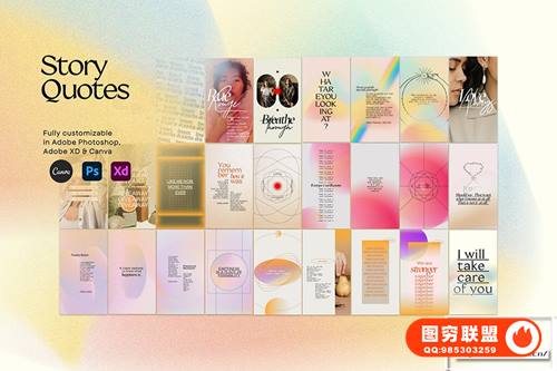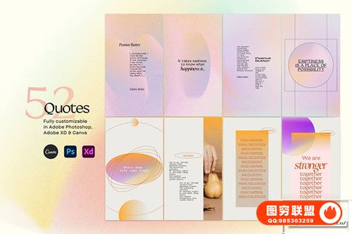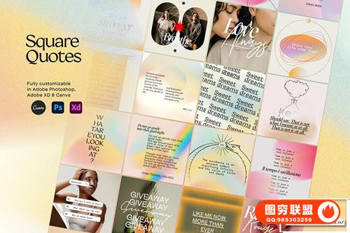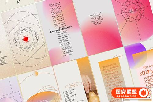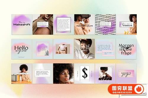 [PSD模板]180款潮流复古科技炫彩渐变INS风新媒体电商海报设计PS & XD素材 Makeshift Carousel & Quotes Canva PS