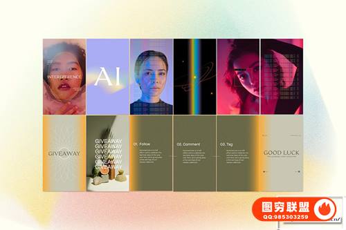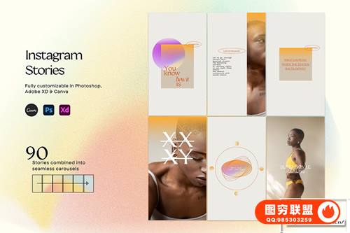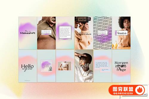 90 个 Canva 布局以 Ins故事的版式组合成 15 个无缝轮播