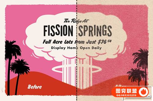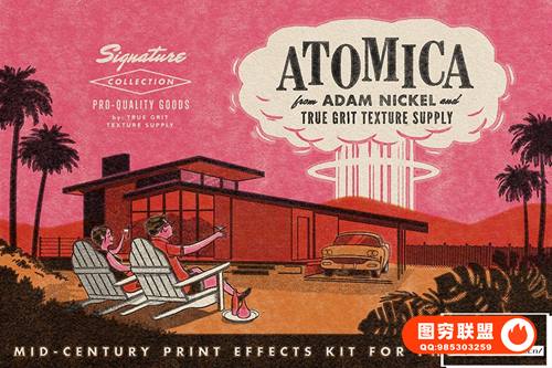 [PSD模板]模拟粗糙复古中世纪印刷纹理色彩特效PS模板 Atomica Mid-Century Print Effects