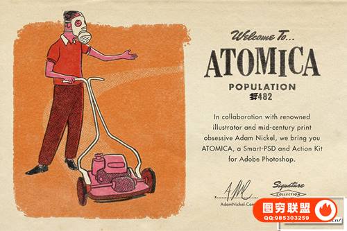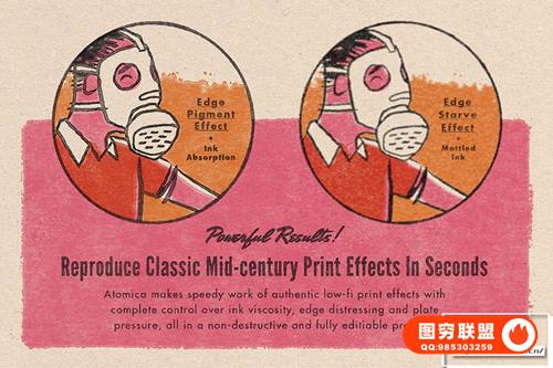 图穷联 » [PSD模板]模拟粗糙复古中世纪印刷纹理色彩特效PS模板 Atomica Mid-C