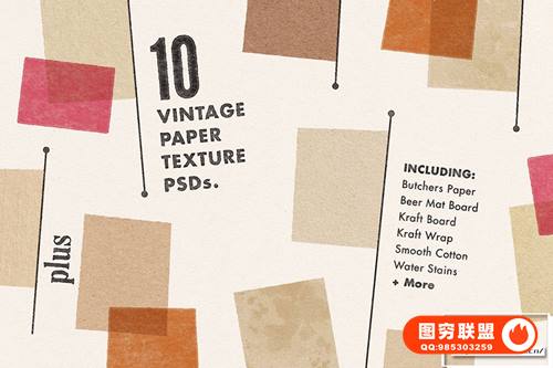 10 x 纸张纹理 PSD,带有预设图层混合,可实现逼真的纸张纹理效果,无需任何经验或修补。