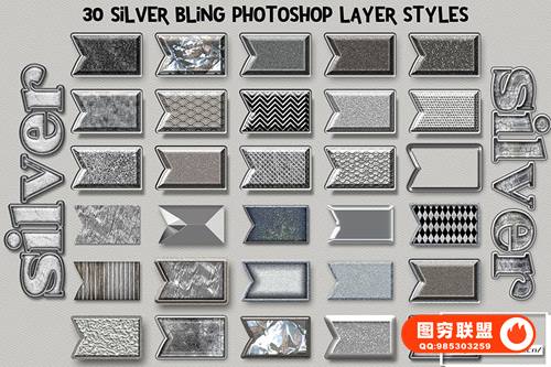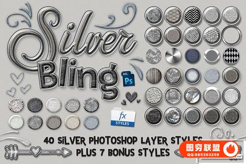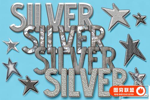 [PS样式]40款高端银质与彩虹星光PS图层样式 Silver Bling Photoshop Layer Styles