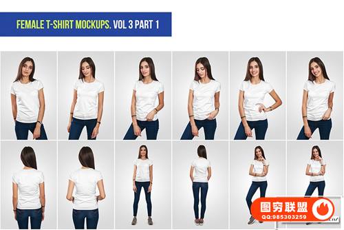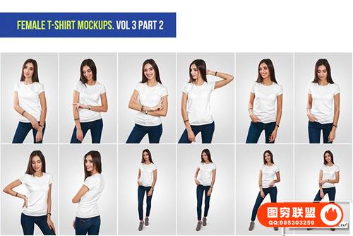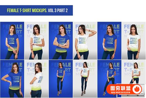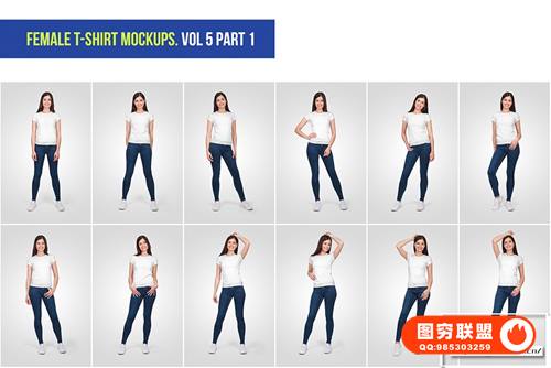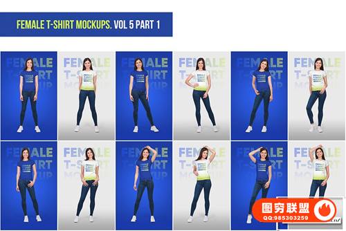 图穷联 » [PS样机]72套女生短袖T恤展示设计PSD模型样机 Female T-Shirt