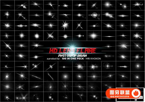 [PS笔刷]106个高分辨率镜头光晕衍射光束星光灯光PS笔刷 Photoshop Brush Lens Flares Bundle
