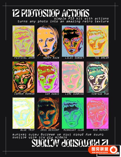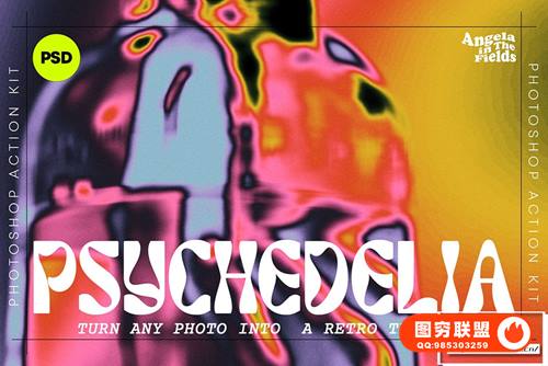 图穷联 » [PSD模板/PS动作]12个奇特复古迷幻扭曲特效酸性肌理图像效果PS动作 Psyc