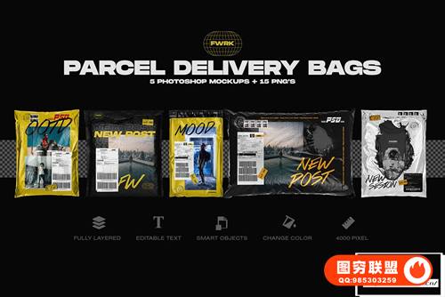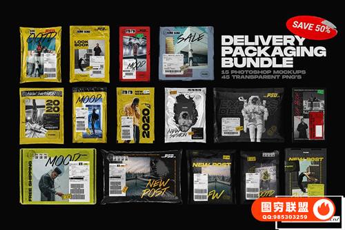 图穷联 » [PS样机]15个快递包裹纸箱包装广告物流出货单PS样机模型 Delivery Pa