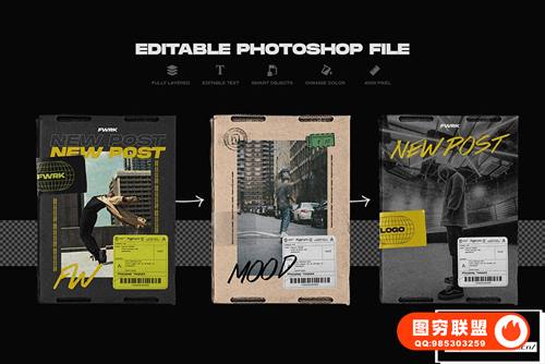 高端范围的分层 Photoshop 文件,大小为 3000-5000 像素,便于编辑。