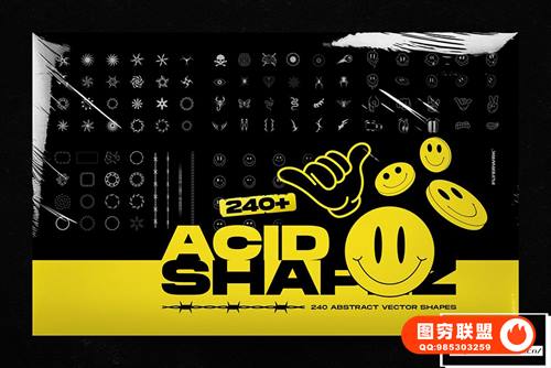 图穷联 » [图片素材]240个酸性设计徽标元素抽象形状矢量素材 Acid Shapes