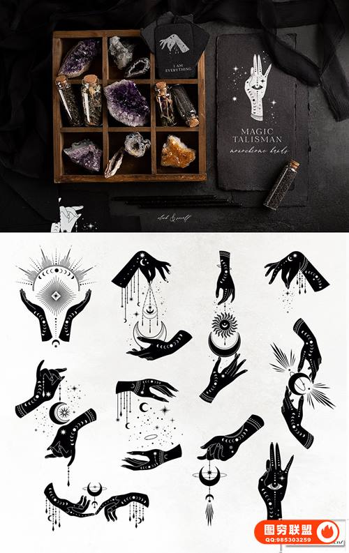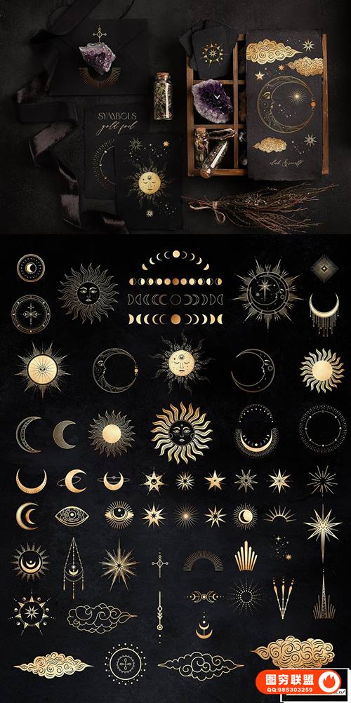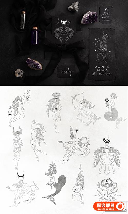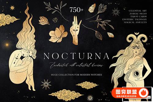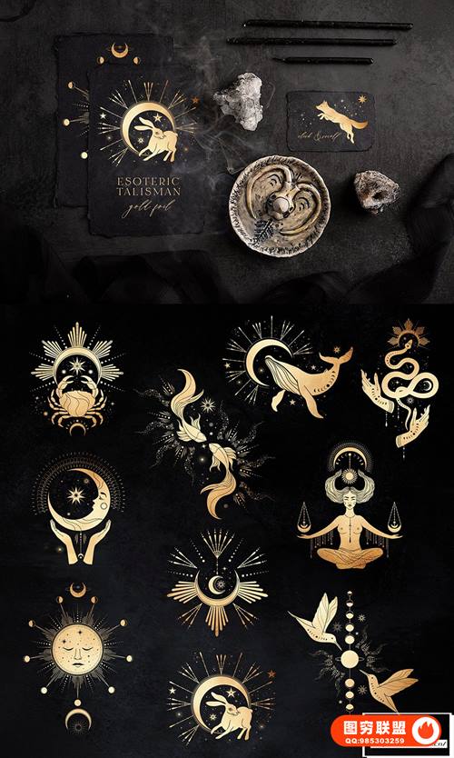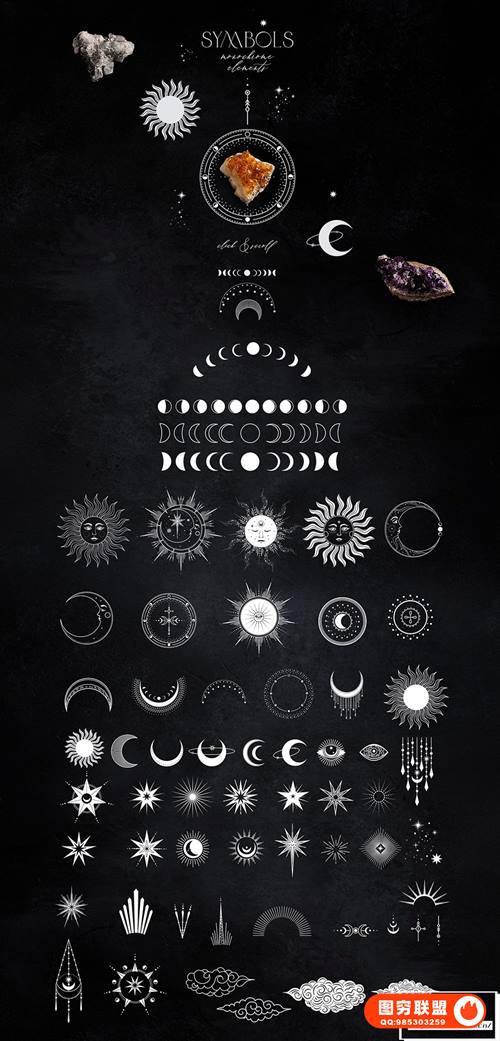 [矢量素材]750个线条艺术元素黑暗神秘魔法图腾能量图形符号矢量设计素材 Nocturna Hidden Secrets Collection