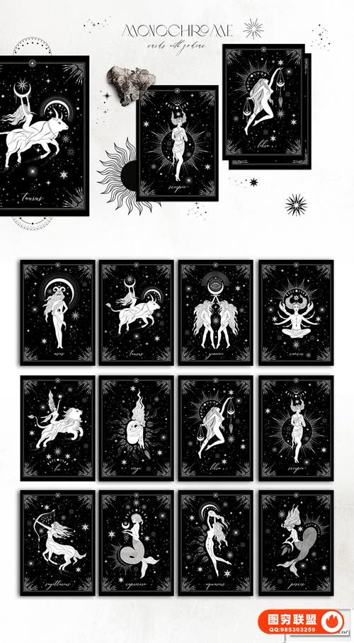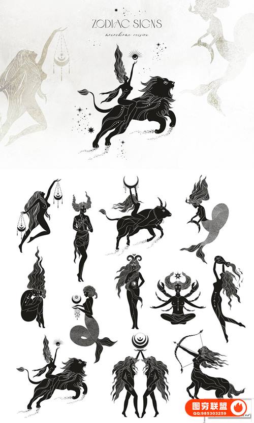 12 个单色星座 ~1000-3000 像素,png+eps,300dpi
