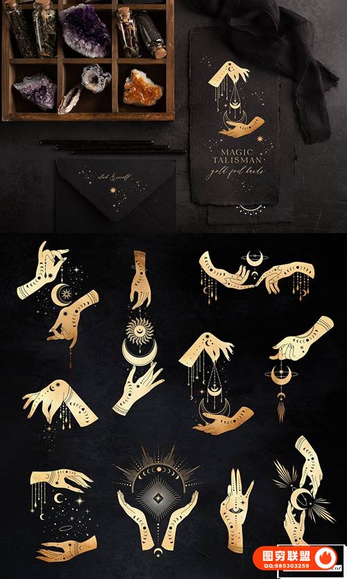 10 张金箔护身符卡 1240-1748 像素,jpg+eps,300dpi