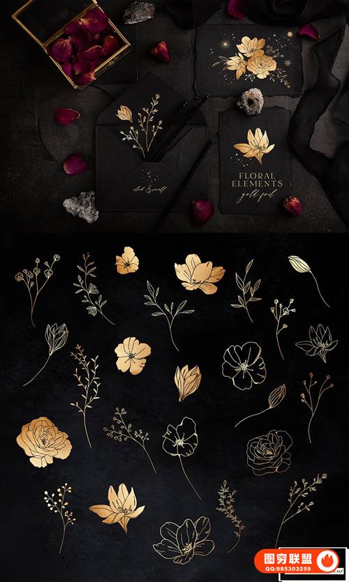 25 金箔花卉元素 ~400-2000px,png, 300dpi