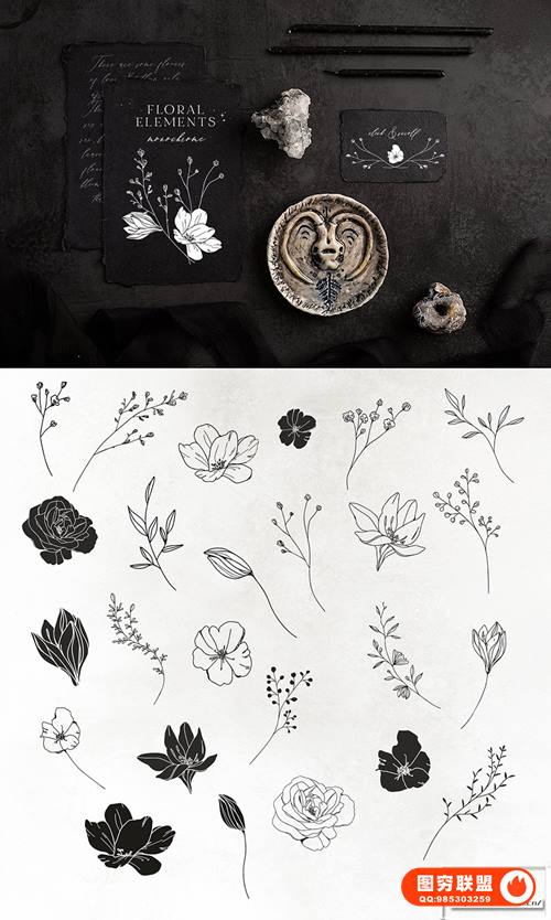 25 单色花卉元素 ~400-2000px,png+eps, 300dpi