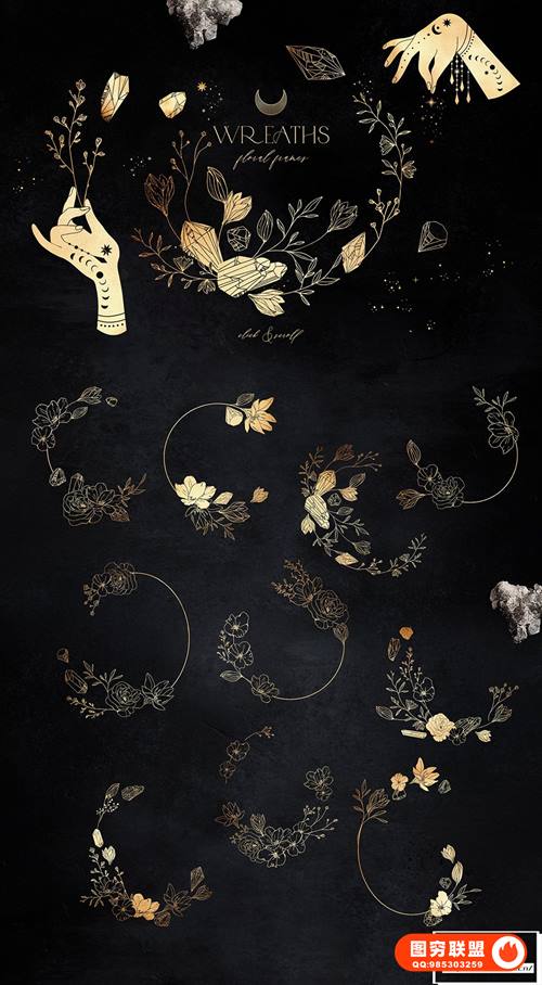 10 个金箔花环 ~1300-2000 像素,png,300dpi