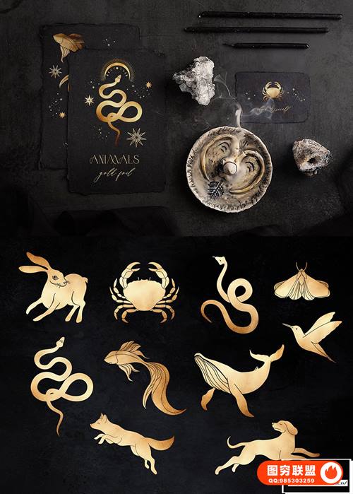10 金箔动物 ~1400-3000px, png, 300dpi